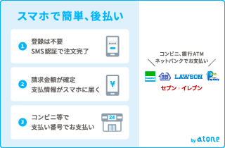 注文が完了してから、コンビニ・銀行ATMで支払いできる安心・簡単な「後払い」です。